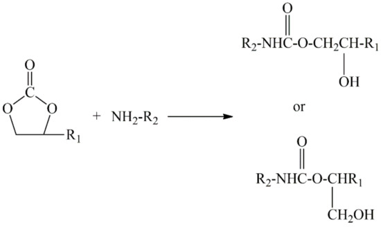 Owing to their excellent surface protection, chemical and abrasion resistance, mechanical properties, high elasticity, and good biocompatibility, polyurethanes (PUs) have become one of the most versatile polymers, with wide application in many fields, such as furnishing, cars, clothing, shoes, elastomers, coatings, walls, and roofing insulation [1,2,3,4,5,6,7,8,9,10]. However, considering the potential harm to the environment and human health by cyanate and phosgene (raw materials for isocyanate), developing non-isocyanate polyurethanes (NIPUs) is a question that needs an immediate answer [9,11,12].
