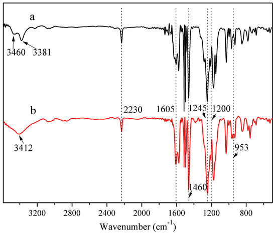 2.4. Preparation of Benzoxazine Containing Fluorinated Aromatic Ether Nitrile Polymers (poly(FAEN-Bz))