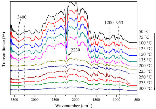3.4. Thermal Stability of Poly(FAEN-Bz) and the Thermal Decomposition Mechanism