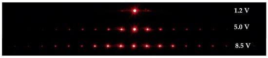 Images of the diffraction when the device is operated with the applied voltages of 1.2, 5.0, and 8.5 V, respectively.