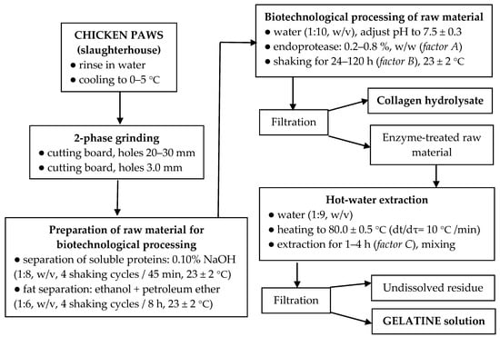 A flow chart of biotechnological processing of chicken feet into gelatines is shown in Scheme 1.