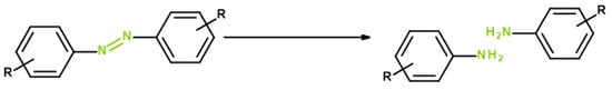 The reductive cleavage of azo-dye linkage.