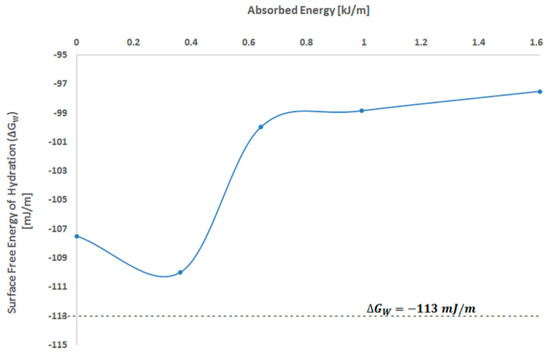 The dependence of the surface free energy of hydration on the MW absorbed energy is presented in Figure 3.