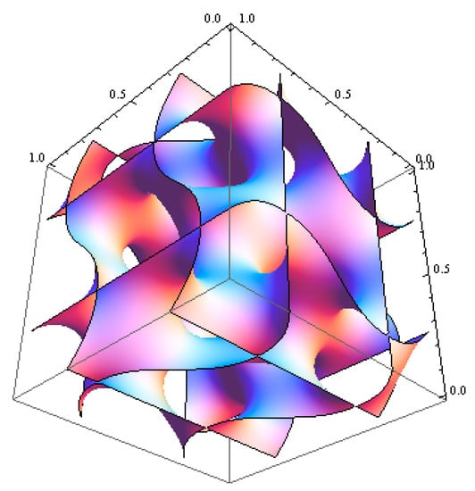 - Rudolf, G. Periodic nodal surfaces and their application in structural chemistry. PhD Thesis, Stuttgart University, Stuttgart, Germany, 1993. [Google Scholar]