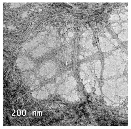 TEM image of cellulose nanofibers isolated from xylanase-treated rice straw unbleached neutral sulfite pulp.