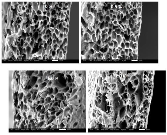 SEM of cross-section of polysulfone membranes with different RSNF loadings.