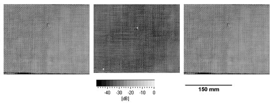 In Figure 4, the flaw echoes of the biaxial fiber-reinforced composites are shown. As can be seen from the flaw echoes, a very homogenous laminate quality without any observable micron-sized defects can be observed in the laminates with 2 mm laminate thickness. Only in the center of the laminates, the vacuum point can be observed, which is in general a resin overshoot and not defined as the defect. In general, C-scans show a very comparable laminate quality for all laminates.