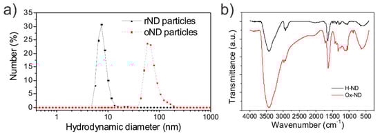 3.1. Analysis of Oxidized and Hydrogenated ND Particles