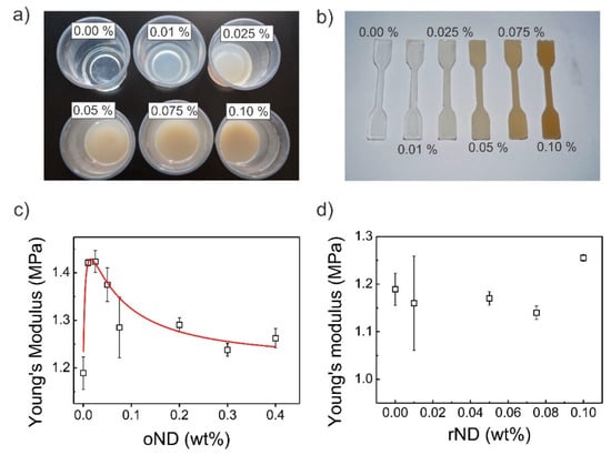 - Hajiali, F.; Shojaei, A. Network structure and mechanical properties of polydimethylsiloxane filled with nanodiamond—Effect of degree of silanization of nanodiamond. Compos. Sci. Technol. 2017, 142, 227–234. [Google Scholar] [CrossRef]