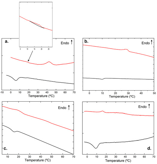 Figure 1c,d, thermograms corresponding to iPS /hybrid gels are shown.
