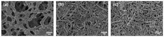 The cellulose acetate membrane paper is usually composed of cellulose fibers arranged in N-dimensional form, and the surface of the cellulose acetate membrane paper is not only very rough but also has a highly porous structure as compared with a conventional flexible substrate. In particular, we can make full use of the porous structure of the cellulose film [,,] to prepare high-performance flexible electrodes.