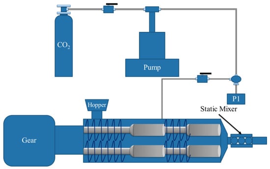 - Sauceau, M.; Nikitine, C.; Rodier, E.; Fages, J. Effect of supercritical carbon dioxide on polystyrene extrusion. J. Supercrit. Fluids 2007, 43, 367–373. [Google Scholar] [CrossRef]