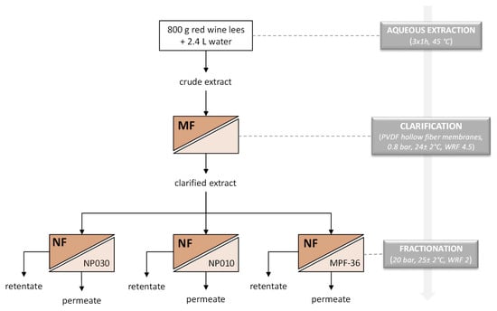 16]. According to the proposed flow-sheet the wine lees extract was pretreated by MF in order to remove suspended colloidal particles. UF and NF membranes allowed to produce concentrated fractions of polysaccharides and polyphenols from the MF permeate and the UF permeate, respectively.