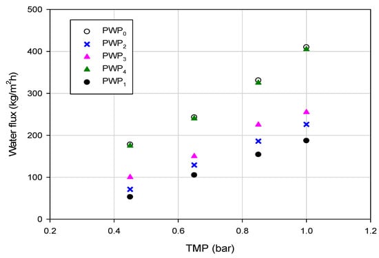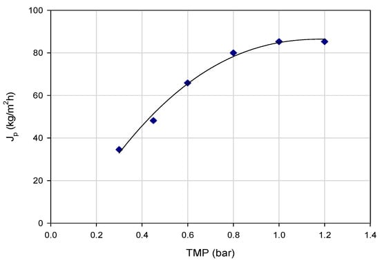 The effect of TMP on the permeate flux was evaluated in experiments performed according to the total recycle configuration at an axial feed flowrate (Q