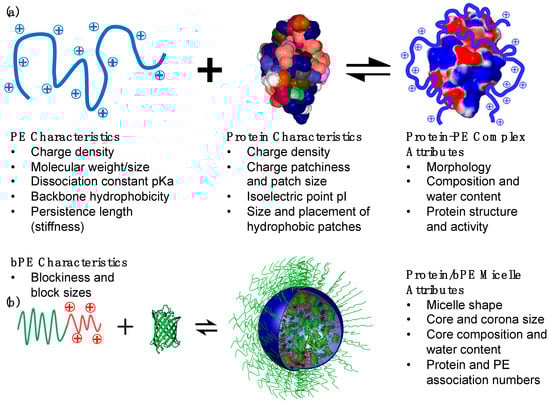 An in-depth comprehension of the influences of protein and PE characteristics on the thermodynamics of complexation is imperative for the effective design and use of protein–PE complexes. Here, we summarize only the key features of thermodynamics of protein–PE complexation necessary for the completeness of the discussion; more details can be found in a recent review by Xu et al. [].