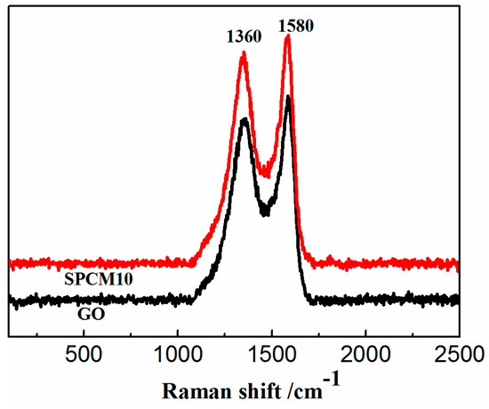 Raman spectra of GO and SPCM10.