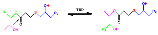 Schematic diagram of dynamic transesterification for the thiol-epoxy matrix.