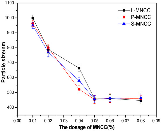 Effect of MNCC dosage on the particle size of emulsion.