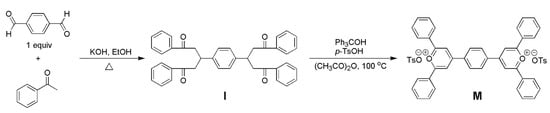 2.2. Synthesis of 4,4’-(1,4-Phenylene)-bis(2,6-diphenylpyrylium)ditosylate Monomer (M)