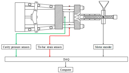 - Zhao, P.; Zhou, H.; He, Y.; Cai, K.; Fu, J.Z. A nondestructive online method for monitoring the injection molding process by collecting and analyzing machine running data. Int. J. Adv. Manuf. Technol. 2014, 72, 765–777. [Google Scholar] [CrossRef]