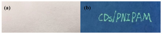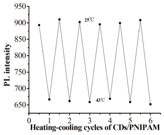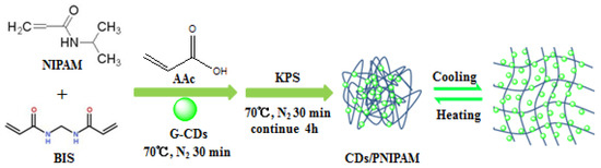 Chicago/Turabian StyleZhao, Dan, Wenting Ma, Rong Wang, Xinzhou Yang, Jun Li, Ting Qiu, and Xincai Xiao. 2019. "The Preparation of Green Fluorescence-Emissioned Carbon Dots/Poly(N-Isopropylacrylamide) Temperature-Sensitive Hydrogels and Research on Their Properties" Polymers 11, no. 7: 1171. https://doi.org/10.3390/polym11071171
