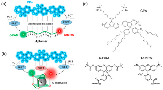 - Nguyen, B.L.; Jeong, J.E.; Jung, I.H.; Kim, B.; Le, V.S.; Kim, I.; Kyhm, K.; Woo, H.Y. Conjugated polyelectrolyte and aptamer based potassium assay via single- and two-Step fluorescence energy transfer with a tunable dynamic detection range. Adv. Funct. Mater. 2014, 24, 1748–1757. [Google Scholar] [CrossRef]