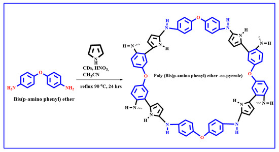 - Maruthapandi, M.; Kumar, V.B.; Levine, M.; Gedanken, A. Fabrication of poly (4,4′-oxybisbenzenamine) and its conjugated copolymers initiated by easily accessible carbon dots. Eur. Polym. J. 2018, 109, 153–161. [Google Scholar] [CrossRef]