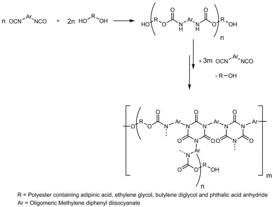 - Modesti, M.; Lorenzetti, A. Experimental method for evaluating isocyanate conversion and trimer formation in polyisocyanate-polyurethane foams. Eur. Polym. J. 2001, 37, 949–954. [Google Scholar] [CrossRef]