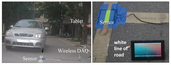 Vehicle detection is an important process in intelligent transport management systems, as it allows the collection of big data on vehicles’ speeds and weights as well as the traffic intensity, which helps to enhance smooth transportation and to reduce road accidents [1]. Non-intrusive and intrusive sensor technologies are often employed for monitoring [1,2,3,4,5,6,7,8,9,10,11]. A laser sensor, a temperature sensor, or an image-based sensor have been used for vehicle detection that is based on a change in laser light intensity, temperature value, or imaging property due to the vehicle appearance [6,7,8]. These approaches have high potential to estimate traffic volume and vehicle classification. However, they are negatively affected by the environmental factors, for example fog, snow, rain, or shadow and the installation and maintenance of such sensor systems result in a relative high cost [8]. Recently, induction loops are most commonly used due to their low-cost and high reliability. The operating concept is that when a vehicle passes over the loop, it induces a current change in the wire loop [1,2,3]. The limitation of such sensors is that the installation process leads to significant damage to an extensive area of road surface. A recent study employed anisotropic magnetoresistance sensors [9,10,11]. Determination of vehicles was realized because the metal construction of a vehicle distorts the magnetic field of the Earth. However, the drawback of this sensing method is that it has a relatively high cost, and is likely to contain noise signals due to interference from neighboring vehicles on the road or metal materials from other sources.