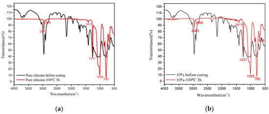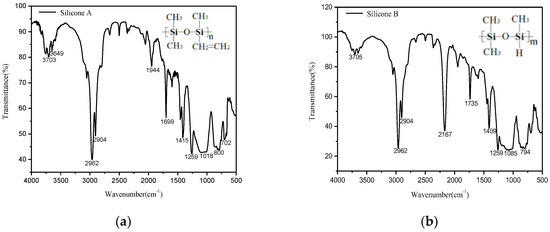 The FTIR spectrum of silicones and their molecular formula (a) silicone A; (b) silicone B.