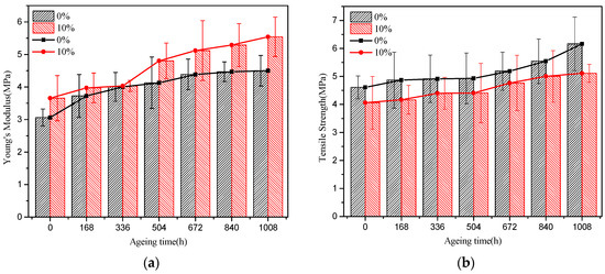 The tensile test results (a) Young’s modulus; (b) tensile strength.