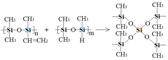 Curing reaction mechanism of silicone A and B.