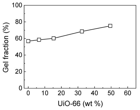 Gel fractions of the UiO-66 dispersed DSPD films as a function of UiO-66 content. (DSPD with 2.5 wt.% silane content was used for composite film fabrication).