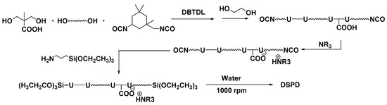 Reaction scheme of DMPA based silane terminated polyurethane dispersion (DSPD).