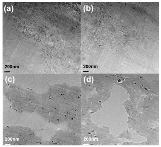 TEM image of PMMA/PS/CNT(90/10/0.5wt%) composites: (a,b) PMMA/PS/CNT and (c,d) PMMA/PS/PMMA–g–CNT.