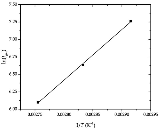 where is the gel time, C is a constant, and k is the reaction rate constant that can be parameterized through the Arrhenius expression, shown in Equation (2):
