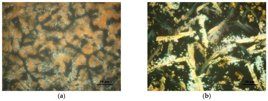 Polarized optical microscopy of (a) Azo at 60 °C, (b) 75:25 Azo/PEG at 60 °C. The complex compositions are designated in wt %.