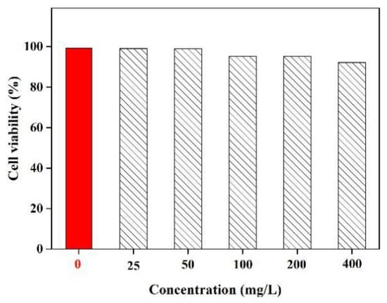 During biological processes, Fe3+ is an important metal ion that involving oxygen uptake, oxygen metabolism and electronic transfer. The lack of Fe3+ can induce many serious diseases in humans, including anemia, decline of immunity and virus infection [41]. Hence, it is important to investigate the biocompatibility behavior of the prepared BRF in vitro. In this work, the in vitro cytotoxicity of BRF was estimated by using an assay involving L929 fibroblasts, with assay results shown in Figure 4.