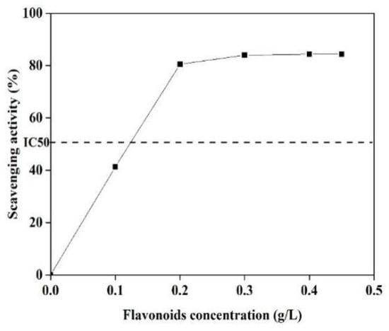 DPPH free radical scavenging ability of BRF with different concentrations of flavonoids.