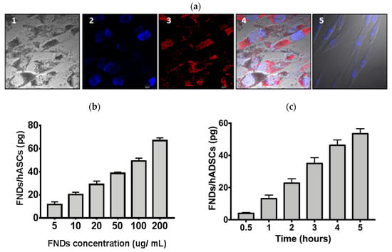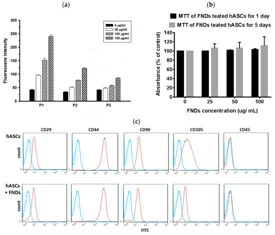 3.3. Proliferations and Differentiation of hASCs Not Affected by FNDs