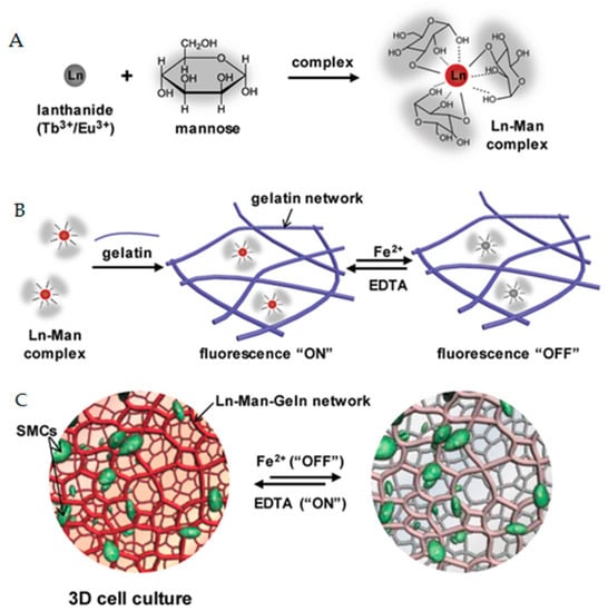 - Meng, K.; Yao, C.; Ma, Q.M.; Xue, Z.X.; Du, Y.P.; Liu, W.G.; Yang, D.Y. A Reversibly Responsive Fluorochromic Hydrogel Based on Lanthanide–Mannose Complex. Adv. Sci. 2019, 6, 1802112. [Google Scholar] [CrossRef] [PubMed]