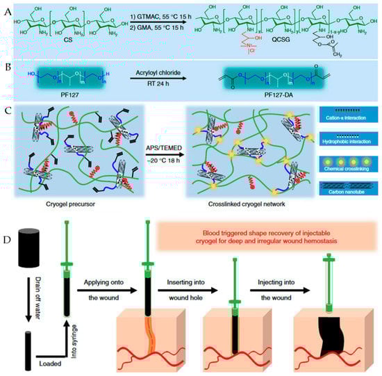 - Zhao, X.; Guo, B.L.; Wu, H.; Liang, Y.P.; Ma, X. Injectable antibacterial conductive nanocomposite cryogels with rapid shape recovery for noncompressible hemorrhage and wound healing. Nat. Commun. 2018, 9, 2784. [Google Scholar] [CrossRef] [PubMed]