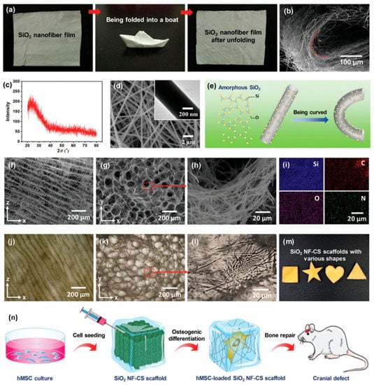 - Wang, L.H.; Qiu, Y.Y.; Lv, H.J. 3D Superelastic Scaffolds Constructed from Flexible Inorganic Nanofibers with Self-Fitting Capability and Tailorable Gradient for Bone Regeneration. Adv. Funct. Mater. 2019, 29, 1901407. [Google Scholar] [CrossRef]