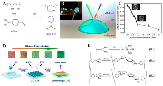 - Chen, C.; Dong, Z.Q. 2D Photonic Crystal Hydrogel Sensor for Tear Glucose Monitoring. ACS Omega 2018, 3, 3211–3217. [Google Scholar] [CrossRef]
