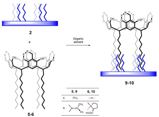 2.4.2. Physical Modification of Polymer 2 with Chiral Resorcinarenes 5 and 6