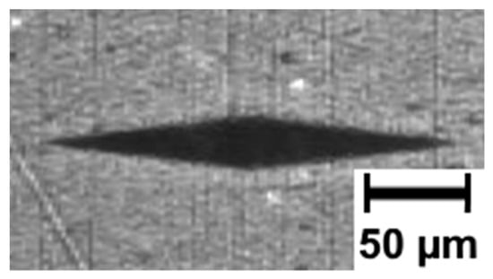 Imprint obtained from the Knoop microhardness test.