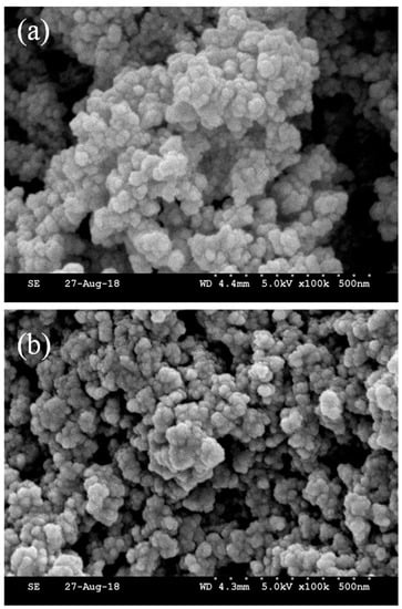 SEM images were obtained to observe the shape and morphology of HMICS and NICS; the images revealed a uniform structure with a spherical morphology. As shown in Figure 5, HMICS had a more uniform structure with a more regular spherical morphology than NICS. Moreover, the HMICS possessed a slightly spherical structure with a relatively greater size distribution, which facilitated mass transfer and rapid sorption kinetics.