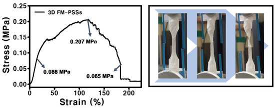 Strain-stress curve and the digital image of 3D FM-PSSs.