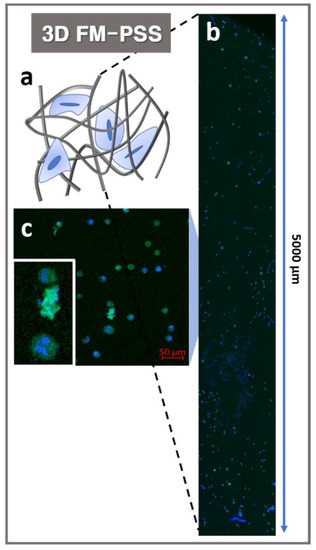 (a) Schematic illustration of the cells cultured in 3D FM-PSS. Z-stack image (b) and confocal microscopy image (c) of the cells on the 3D FM-PSS (inset: the enlarged image).
