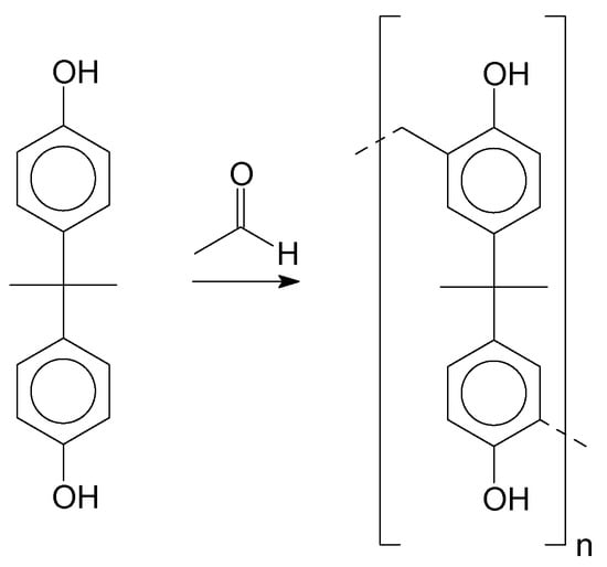 The polymerization of the resins was performed using bisphenol-A as the monomer. Figure 2 depicts the polymerization reaction. After the synthesis procedure, the products were, in most cases, oligomers, with short chain sizes varying “n” from 1 to 5.